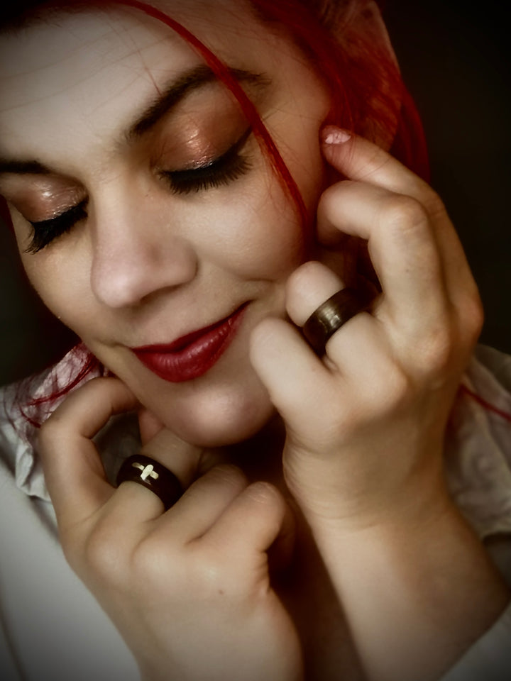 silver and wood rings